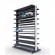 В боковых стойках стеллажа установлена декоративная пластиковая панель, толщиной 2 мм. Данная панель предназначена для нанесения индивидуального дизайна или логотипа и с лицевой стороны закрывает элементы крепления. В базовой комплектации, стеллаж установлен на винтовые опоры. По желанию Заказчика стеллажи можно укомплектовать колесными опорами (перемещение стеллажей на роликовых опорах возможно только без установленного на него оборудования) или поставить на рельсовую систему, также, дополнительно, возможно установить панорамную пластиковую панелью размерам В.2250 * Ш.670 мм., с изображением и ручку для удобного перемещения. Оборудование окрашивается полимерным порошковым покрытием с высокими защитными и декоративными свойствами. По желанию Заказчика, возможно, покрасить стеллаж в любой цвет по палитре RAL. Так же возможно изготовление стеллажа по индивидуальным размерам Заказчика.