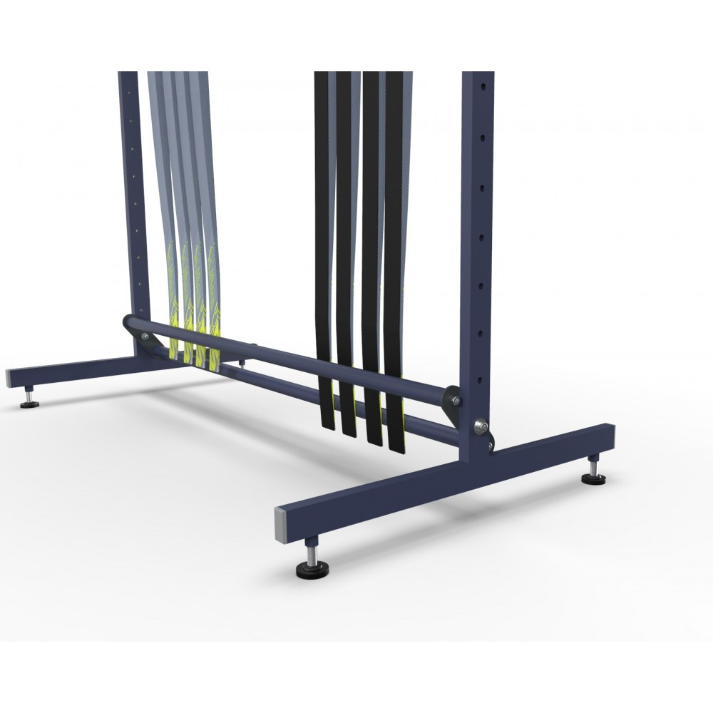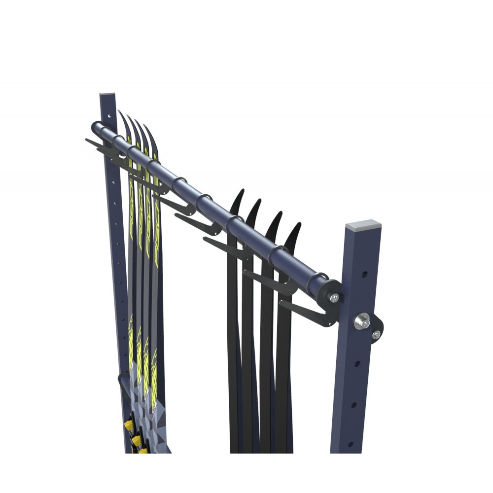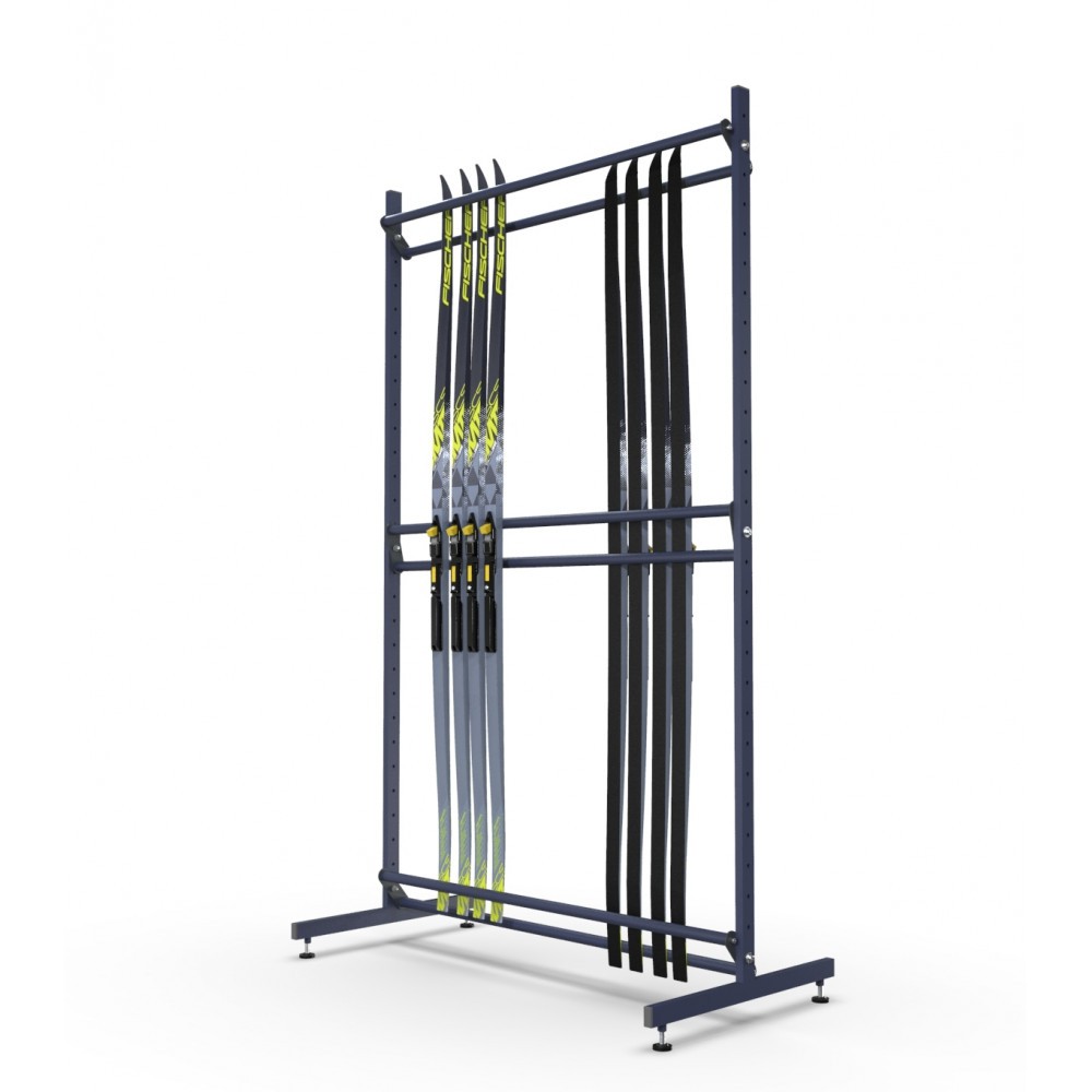 Стеллажи обладают сборно-разборной конструкцией. Благодаря регулировке горизонтальных держателей лыж с шагом в 5 см., возможно хранение лыж различной длины: взрослые, подростковые и детские от 100 до 210 см. Так же предусмотрена дополнительная регулировка натяжения предотвращающая сползания лыж в низ, надежно фиксируя.