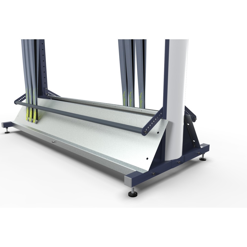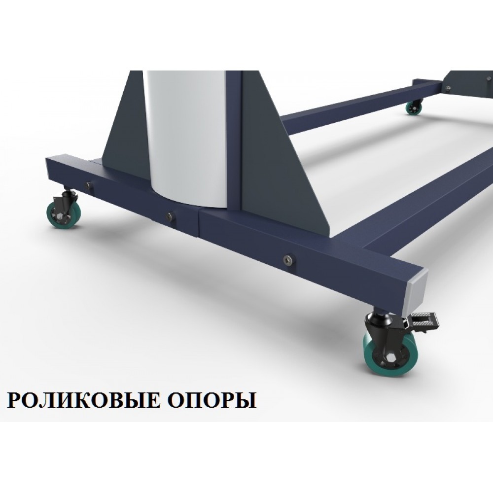 В базовой комплектации, стеллаж установлен на винтовые опоры. По желанию Заказчика стеллажи можно укомплектовать колесными опорами или поставить на рельсовую систему. При установке на роликовые опоры, стеллаж с оборудованием можно перемещать по салону проката или в комнату сервисного обслуживания инвентаря.