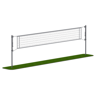 Конструкция оснащена двумя узлами натяжения сетки, что обеспечивает равномерное распределение нагрузки и корректное положение сеточного полотна во время игры. В комплект входит сетка, что позволяет использовать оборудование сразу после установки.