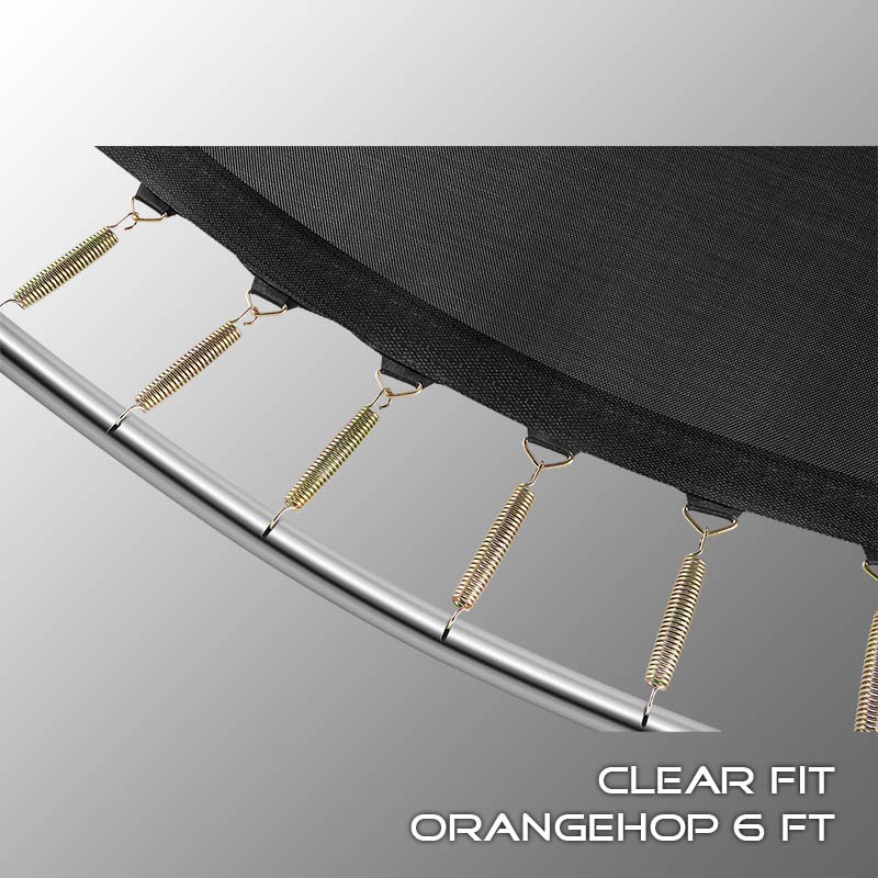 В 2026 году представлена обновленная линейка с улучшенной конструкцией каркаса. Усиление достигнуто за счет использования прочных Т-образных кронштейнов из металла толщиной 1.9 мм. Кроме того, в комплектацию добавлен карман для обуви. Каркасный батут с защитной сеткой Clear Fit серии OrangeHop — отличаются комфортом и надежностью. Надежная рама из качественных комплектующих, прочная защитная сеть снабжена прямым креплением к прыжковому полотну и дополнительной защитой входа, наверху каркасное жесткое крепление, сеть не провисает и не слетает во время тренировок. Увлекательный, полезный и безопасный тренажер для всей семьи. Батуты серии OrangeHop 6Ft и 8Ft поставляются в оптимальной для комфорта и безопасности комплектации: батут, верхняя защитная сеть, защитный мат и карман для обуви. Размер батута 6 футов с прыжковой поверхностью 1.42 м и его легко разместить на небольшом участке, он подойдет для детских игр и для тренировок. Верхняя защитная сеть оберегает от падений, усиленная молния и дополнительная защита входа уберегут малышей от случайного входа или падения. Надежный каркас из гальванизированной стали, качественные комплектующие и погодостойкие метизы рамы делают батут безопасным, устойчивым, надежным, гарантируют полную защиту от коррозии и долгий срок службы. Максимальный вес пользователя батута OrangeHop 6Ft — до 130 кг.