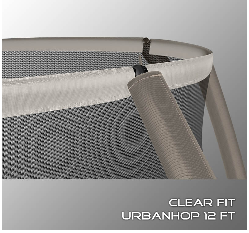 В 2026 году представлена обновленная линейка с улучшенной конструкцией каркаса. Усиление достигнуто за счет использования прочных Т-образных кронштейнов из металла толщиной 1.9 мм. Кроме того, в комплектацию добавлен карман для обуви. Каркасный батут с защитной сеткой Clear Fit серии UrbanHop — отличаются комфортом и надежностью. Надежная рама из качественных комплектующих, прочная защитная сеть снабжена прямым креплением к прыжковому полотну и дополнительной защитой входа, наверху каркасное жесткое крепление, сеть не провисает и не слетает во время тренировок. Увлекательный, полезный и безопасный тренажер для всей семьи. Батуты серии UrbanHop 10Ft, 12Ft, 14Ft и 16Ft поставляются в оптимальной для комфорта и безопасности комплектации: батут, верхняя защитная сеть, защитный мат, лестница и карман для обуви. Батут размером в 12 футов с прыжковой поверхностью 3.21 м идеально подходит для пользователей любого возраста, размеры полотна позволяют комфортно тренироваться взрослым и развлекаться детям, включая подростков. Верхняя защитная сеть оберегает от падений, усиленная молния и дополнительная защита входа уберегут малышей от случайного входа или падения. Надежный каркас из оцинкованной стали, качественные комплектующие и погодостойкие гальванизированные метизы рамы делает батут безопасным, устойчивым, надежным, гарантируют полную защиту от коррозии и долгий срок службы. Максимальный вес пользователя батута UrbanHop 12Ft — до 200 кг.