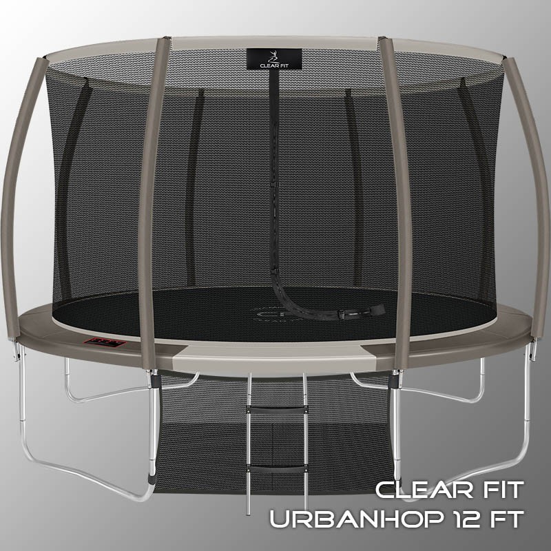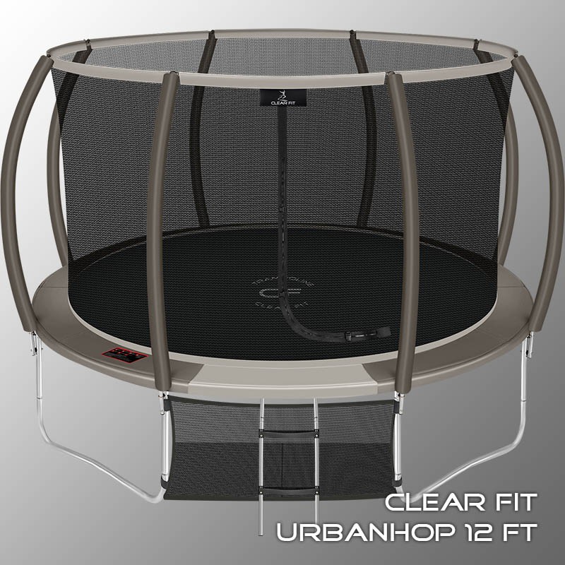 В 2026 году представлена обновленная линейка с улучшенной конструкцией каркаса. Усиление достигнуто за счет использования прочных Т-образных кронштейнов из металла толщиной 1.9 мм. Кроме того, в комплектацию добавлен карман для обуви. Каркасный батут с защитной сеткой Clear Fit серии UrbanHop — отличаются комфортом и надежностью. Надежная рама из качественных комплектующих, прочная защитная сеть снабжена прямым креплением к прыжковому полотну и дополнительной защитой входа, наверху каркасное жесткое крепление, сеть не провисает и не слетает во время тренировок. Увлекательный, полезный и безопасный тренажер для всей семьи. Батуты серии UrbanHop 10Ft, 12Ft, 14Ft и 16Ft поставляются в оптимальной для комфорта и безопасности комплектации: батут, верхняя защитная сеть, защитный мат, лестница и карман для обуви. Батут размером в 14 футов с прыжковой поверхностью 3.82 м идеально подходит для пользователей любого возраста и комплекции, для детских и подростковых игр, для спортивных тренировок и для фитнеса. Верхняя защитная сеть оберегает от падений, усиленная молния и дополнительная защита входа уберегут малышей от случайного входа или падения. Надежный каркас из оцинкованной стали, качественные комплектующие и погодостойкие гальванизированные метизы рамы делают батут безопасным, устойчивым, надежным, гарантируют полную защиту от коррозии и долгий срок службы. Максимальный вес пользователя батута UrbanHop 14Ft — до 250 кг.