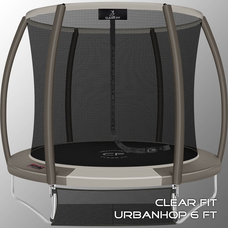 В 2026 году представлена обновленная линейка с улучшенной конструкцией каркаса. Усиление достигнуто за счет использования прочных Т-образных кронштейнов из металла толщиной 1.9 мм. Кроме того, в комплектацию добавлен карман для обуви. Каркасный батут с защитной сеткой Clear Fit серии UrbanHop — отличаются комфортом и надежностью. Надежная рама из качественных комплектующих, прочная защитная сеть снабжена прямым креплением к прыжковому полотну и дополнительной защитой входа, наверху каркасное жесткое крепление, сеть не провисает и не слетает во время тренировок. Увлекательный, полезный и безопасный тренажер для всей семьи. Батуты серии UrbanHop 6Ft и 8Ft поставляются в оптимальной для комфорта и безопасности комплектации: батут, верхняя защитная сеть, защитный мат и карман для обуви. Размер батута 6 футов с прыжковой поверхностью 1.42 м и его легко разместить на небольшом участке, он подойдет для детских игр и для тренировок. Верхняя защитная сеть оберегает от падений, усиленная молния и дополнительная защита входа уберегут малышей от случайного входа или падения. Надежный каркас из гальванизированной стали, качественные комплектующие и погодостойкие метизы рамы делают батут безопасным, устойчивым, надежным, гарантируют полную защиту от коррозии и долгий срок службы. Максимальный вес пользователя батута UrbanHop 6Ft — до 130 кг.