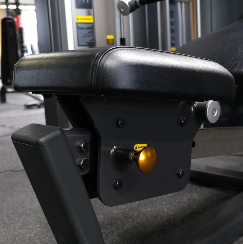 Сиденье и спинка выполнены в анатомической форме — они повторяют контуры тела, обеспечивая комфорт и правильную посадку. Регулировка сиденья по горизонтали позволяет пользователю подстроить тренажёр под индивидуальные особенности роста и длины рук.