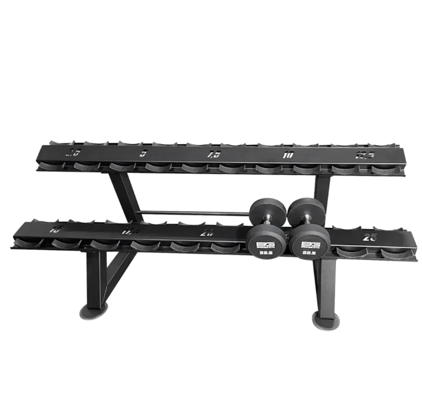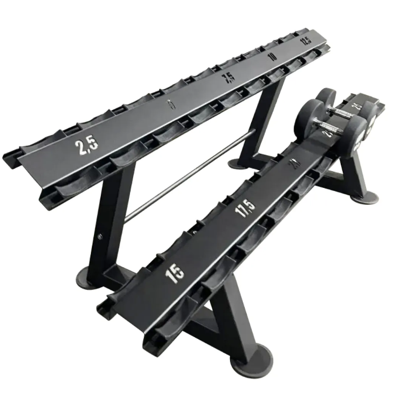 Стойка для гантелей PARTNER AL-420 — функциональное и надёжное решение для организованного хранения гантельного ряда в профессиональных тренажёрных залах. Конструкция рассчитана на размещение 10 пар гантелей, обеспечивая удобный доступ к снарядам и порядок в силовой зоне. Прочная стальная рама выдерживает высокие эксплуатационные нагрузки и подходит для интенсивного коммерческого использования. Двухъярусная компоновка позволяет рационально использовать пространство, а анатомически сформированные ложементы надёжно фиксируют гантели, предотвращая их скатывание и повреждение. Оптимальная высота полок обеспечивает комфортный и безопасный съём гантелей, снижая нагрузку на спину и суставы спортсмена. Устойчивое основание и подпятники гарантируют стабильность стойки даже при полной загрузке.