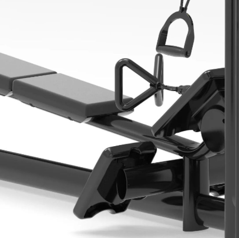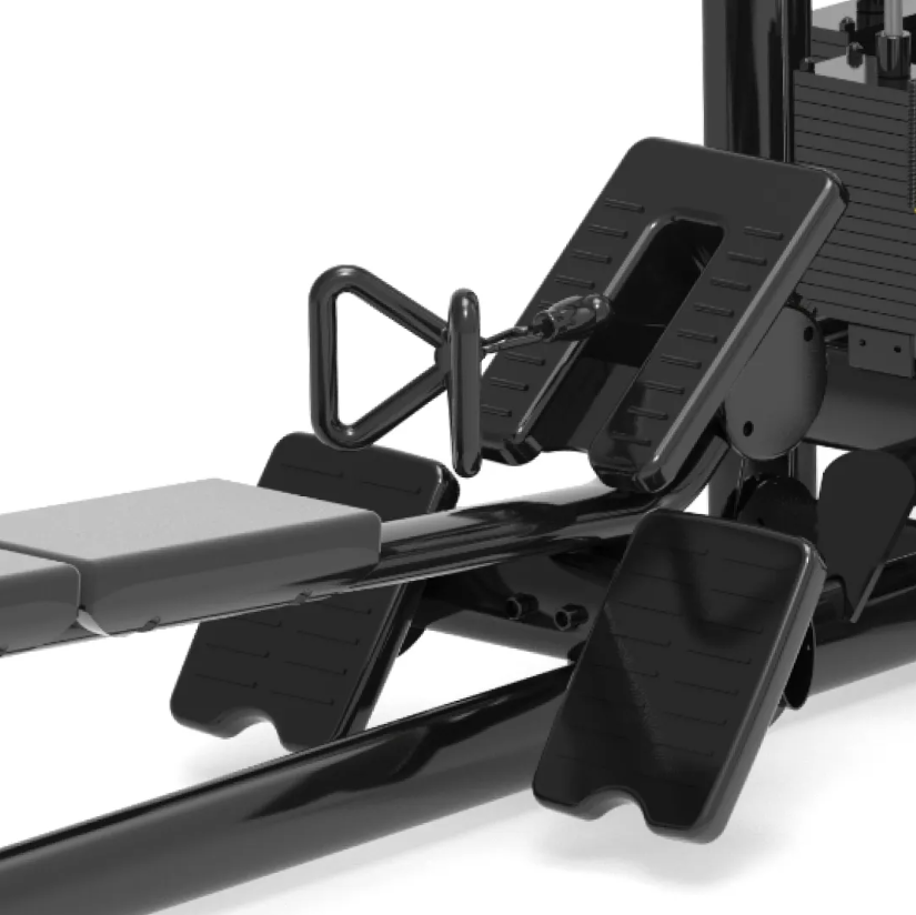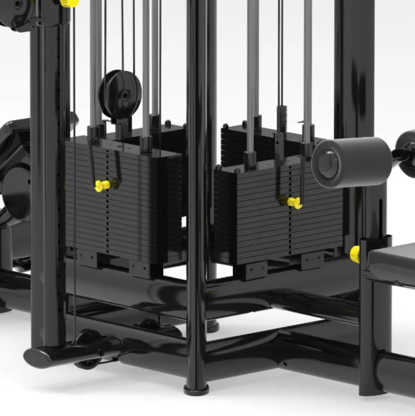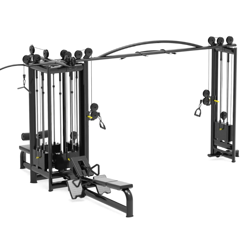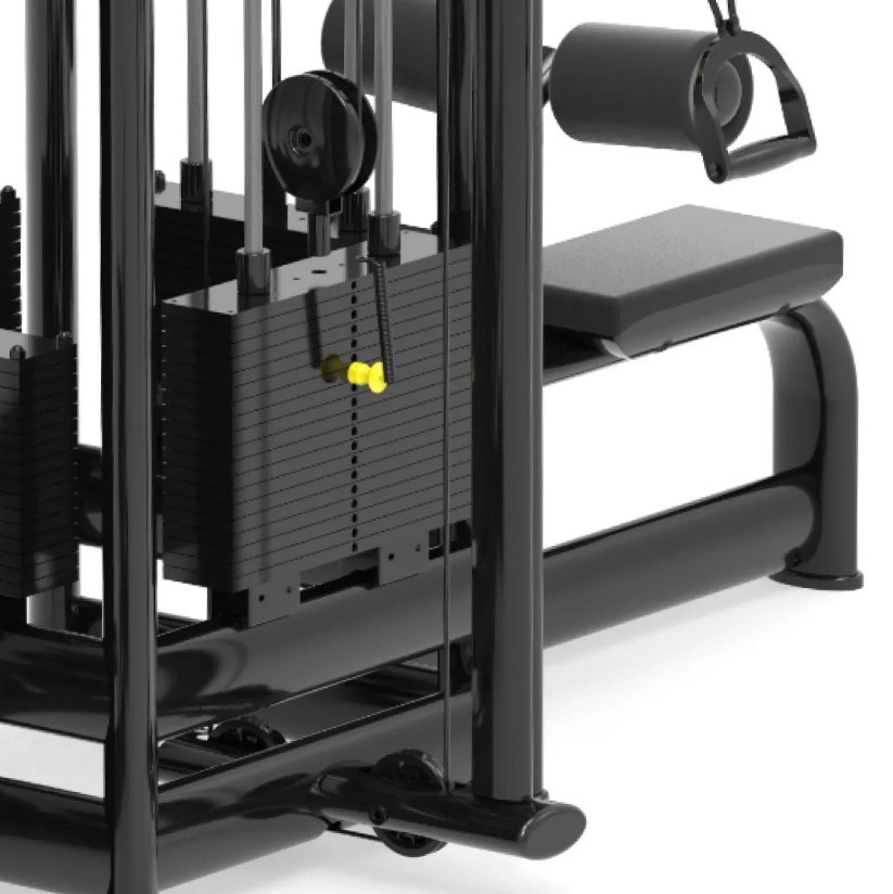 Функциональные зоны: 1. Горизонтальная тяга сидя Назначение: развитие широчайших мышц спины и задних дельтовидных мышц. Особенности: регулируемый угол хвата позволяет варьировать нагрузку и адаптировать технику под любые цели. 2. Тяга сверху сидя Назначение: акцент на проработку широчайших мышц и задних дельт. Особенности: множество вариантов хвата для глубокой проработки и повышения эффективности. 3. Тяга сверху стоя Назначение: укрепление спины, плеч и рук. Особенности: свобода в выборе хвата и амплитуды для создания разнообразной тренировочной нагрузки. 4. Кроссовер (двойной функциональный блок) Назначение: выполнение широкого спектра упражнений под разными углами, включая изоляционные движения и функциональные тренировки. Особенности: максимальная свобода движений и универсальность применения. 5. Дополнительный блок (например, для трицепса или бицепса) Назначение: проработка рук, грудных или дельтовидных мышц в зависимости от насадки и направления нагрузки. Особенности: позволяет использовать станцию как полноценный многофункциональный тренажёр. Технические характеристики: Габариты: 5800 × 2463 × 2336 мм Вес стека: 100 кг × 4, 70 кг × 1 Общий вес: 758 кг Размер упаковки: — 1400 × 1350 × 2425 мм — 2500 × 700 × 850 мм Вес упаковки: 908 кг Рама: плоская овальная труба 60×120×3.0 мм и 40×80×3.0 мм Оснащение: — противоскользящие подпятники — анатомические рукоятки — закрытые шкивы для безопасности и долговечности
