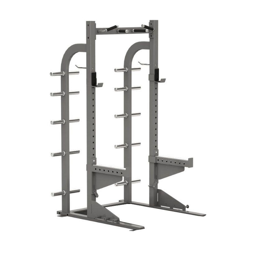 Каркас полурамы выполнен из конструкционной стали марки Q235 с квадратным профилем 80×80×3 мм. Такой размер обеспечивает исключительную жёсткость и устойчивость при любых нагрузках, что особенно важно при выполнении приседаний, жимов и становых тяг. Конструкция выдерживает вес до 300 кг, сохраняя стабильность и надёжность при интенсивных тренировках.