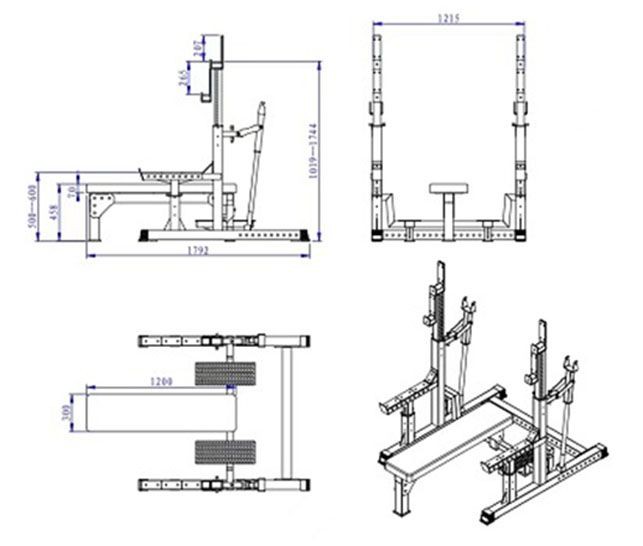 Такая конструкция обеспечивает комфорт и безопасность при выполнении упражнений с большими весами. Надёжная фиксация стоек исключает смещение во время подхода, а широкий диапазон регулировки позволяет точно воспроизводить соревновательные условия.
