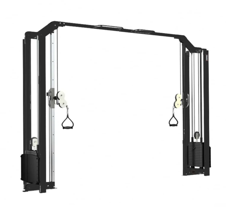 Кроссовер оборудован двумя стеком по 75 кг, которые работают независимо друг от друга. Это обеспечивает равномерную нагрузку на правую и левую стороны тела и позволяет выполнять как классические кроссоверы, так и односторонние тяги, подъёмы, жимы и реабилитационные упражнения. Весовой стек двигается плавно, с минимальным уровнем шума, за счёт использования качественных направляющих и роликов.