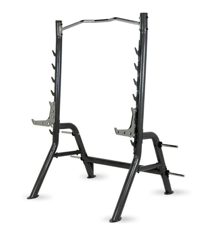Каркас выполнен из прочной стальной рамы с круглым профилем, покрытой порошковой краской для защиты от коррозии. Конструкция предусматривает 5 уровней фиксации штанги, а также пару удлиненных регулируемых по вертикали рычагов, которые облегчают установку грифа во время жима.