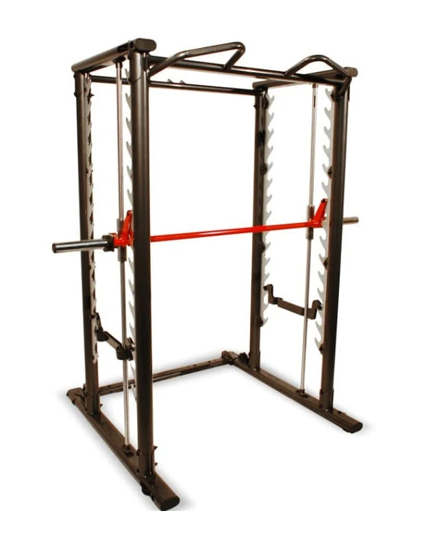 Система Смита предусматривает фиксаторы, расположенные вдоль направляющих, которые позволяют мгновенно зафиксировать гриф на нужной высоте. Это делает тренировки безопасными даже для новичков или спортсменов, занимающихся без напарника.