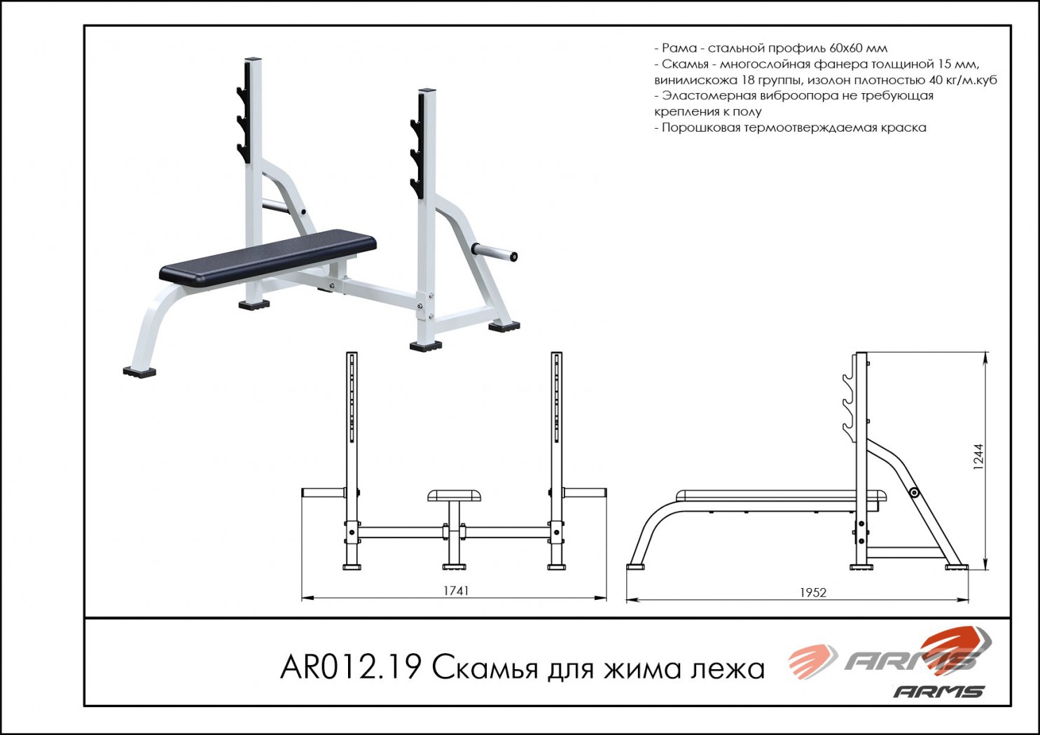 Скамья для жима лежа ARMS AR012.19 s-dostavka Екатеринбург