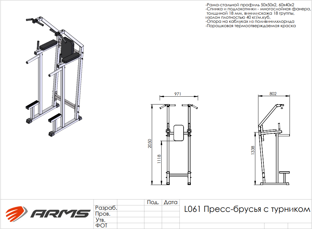 Турник пресс-брусья с упором укороченный 205 см L061-205 ARMS Екатеринбург