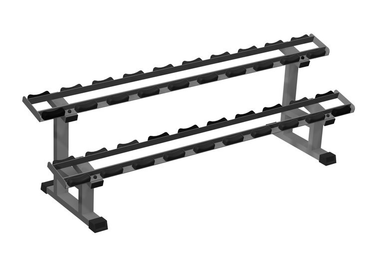 IK 203 Стойка для профессиональных гантелей 2-х ярусная на 10 пар – это профессиональная стойка, разработанная для использования в тренажерных залах со средней и высокой проходимостью.Продуманный дизайн «без излишеств» и демократичная стоимость делают её максимально привлекательной для желающих открыть свой тренажерный зал.