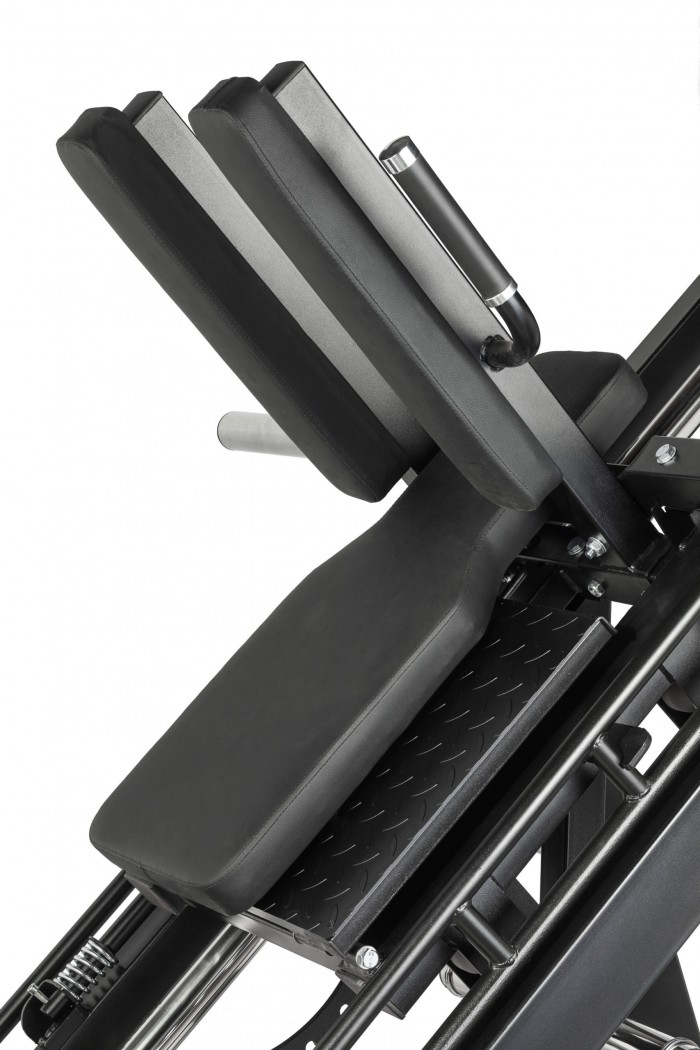 Два режима работы в одном тренажере – выполняйте жим ногами для квадрицепсов и бицепсов бедер или гак-приседания для комплексной проработки ног и ягодиц.