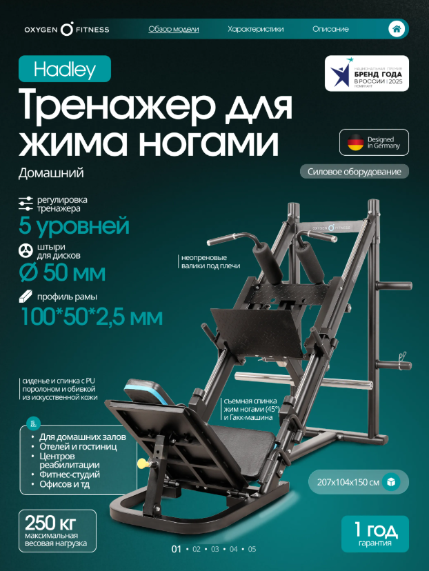Профессиональный тренажер Жим ногами / Гакк-присед OXYGEN FITNESS HADLEY кумитеспорт Екатеринбург