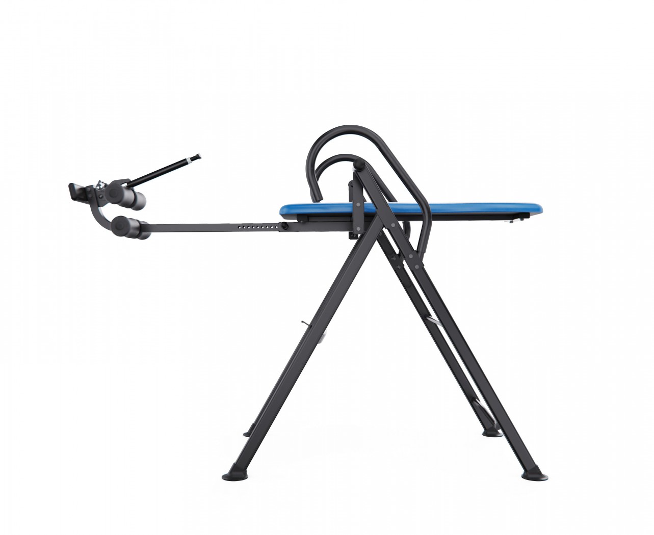 Регулировка угла инверсии осуществляется с помощью задней планки с тремя фиксированными положениями: лёгкая, умеренная и усиленная инверсия. Без использования планки стол позволяет принять полностью вертикальное положение до 90 градусов и регулируется по росту пользователя от 155 до 190 см.