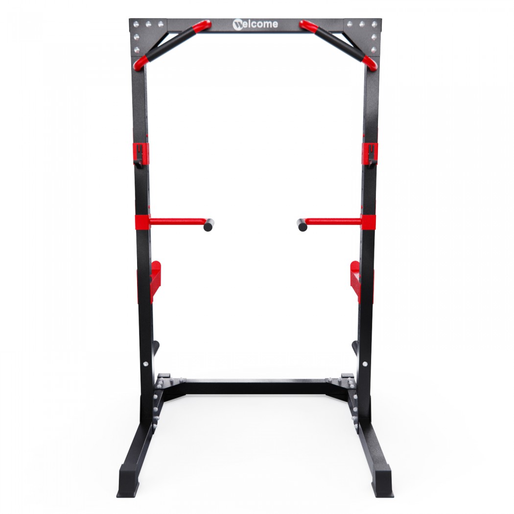 Устойчивое основание стойки для приседаний из высокопрочной профильной трубы 50 х 75 х 1,5 мм выдерживает нагрузку 200 кг. Подходит для выполнения полного спектра упражнений со штангой: от приседаний и становой тяги до жима лежа. Нескользящие рукоятки для подтягиваний диаметром 25 мм и пара поручней для отжиманий помогут дополнительно разнообразить ваши тренировки.