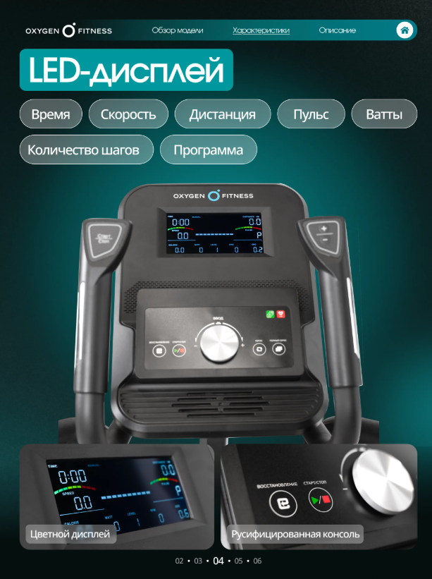 OXYGEN FITNESS MULBERRY — функциональный эллиптический тренажёр для домашних тренировок, созданный для пользователей, которым важны длинный шаг, точная электронная регулировка нагрузки и современные цифровые возможности. Модель ориентирована на регулярные кардиотренировки, работу над выносливостью и контролируемые занятия по пульсу, сочетая комфорт движения с интерактивными тренировочными форматами. Тренажёр построен на высокопрочной раме с антикоррозийной обработкой и двухслойной покраской, что обеспечивает устойчивость, надёжность и длительный срок службы. Ключевые параметры движения: • Длина шага 530 мм — близкая к естественной беговой траектории, подходит пользователям разного роста. • Минимальное расстояние между педалями — 62 мм, что снижает нагрузку на коленные и тазобедренные суставы. • Трёхкомпонентный шатун — повышенная прочность и стабильность педального узла. • Инерционный вес маховика 8 кг обеспечивает плавный и равномерный ход без рывков. Увеличенные антискользящие педали гарантируют надёжную фиксацию стопы даже при интенсивной работе, а двухпозиционные нескользящие рукоятки позволяют задействовать мышцы верхней части тела. OXYGEN FITNESS MULBERRY оснащён электромагнитной системой нагружения с 16 уровнями сопротивления, регулируемыми электронно. Такая система обеспечивает точную настройку интенсивности и плавное изменение нагрузки во время тренировки. Цветная LED-консоль отображает расширенный набор параметров: • время, скорость, дистанцию, • калории, пульс, • программу, Ватты, • жироанализатор, • количество шагов. Программный пакет включает 22 режима тренировок: • быстрый старт и ручной режим, • 10 предустановленных программ, • 4 пульсозависимые программы, • 4 пользовательские программы, • режим работы по Ваттам, • жироанализатор. Для более точного контроля пульса предусмотрена возможность подключения Bluetooth-кардиодатчика (приобретается отдельно). Тренажёр поддерживает Bluetooth-подключение к популярным приложениям Kinomap™ и Zwift™ с интерактивным уровнем интеграции, что делает тренировки более вовлекающими и разнообразными. Интерфейс доступен на русском и английском языках. Для удобства пользователя предусмотрены: • подставка под планшет или смартфон, • подставка для бутылки, • удлинённый сетевой шнур 4 м, • транспортировочные ролики и компенсаторы неровностей пола.
