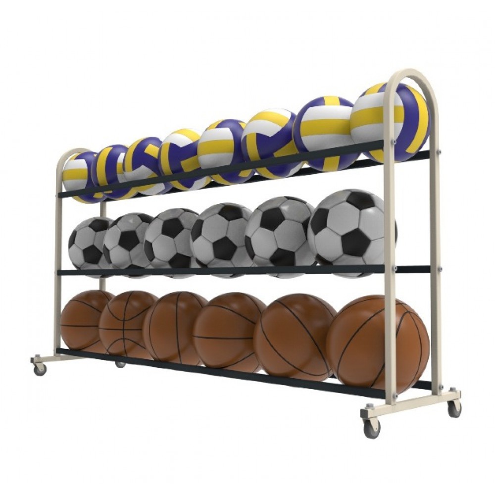 Передвижная тележка для хранения мячей обладает сборно-разборной конструкцией. Легка в сборке и имеет малые габариты для транспортировки.