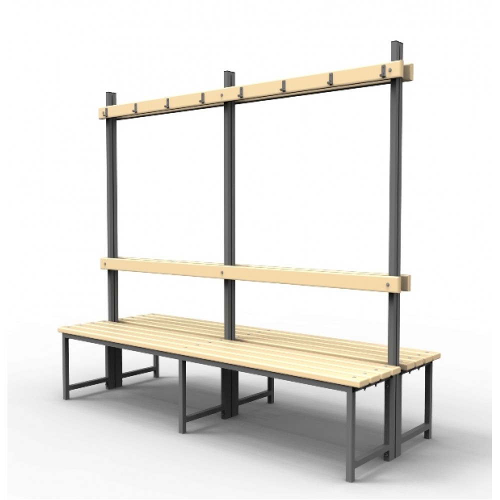 Скамейка для раздевалок с вешалкой двойная с пластиковыми рейками SRVD 200/75/178 2 метра Екатеринбург