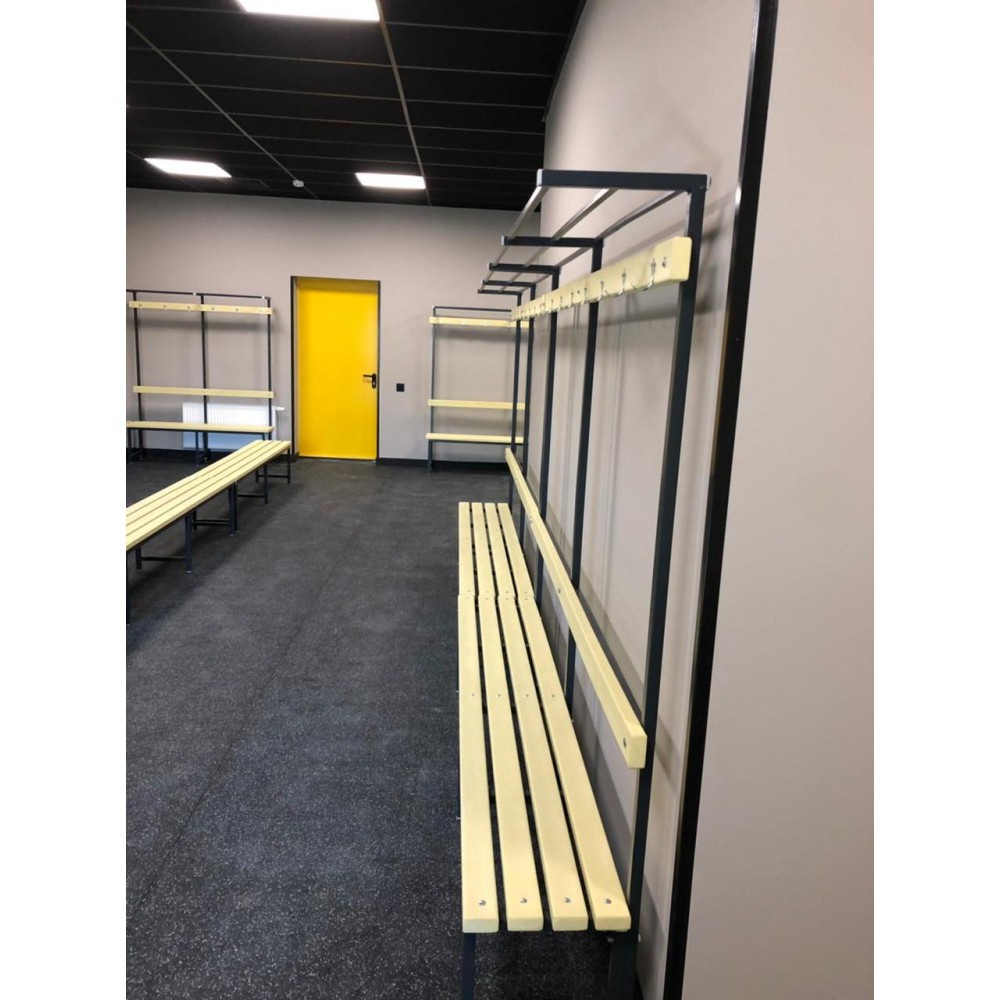 Скамейка для раздевалок с вешалкой и полкой с пластиковыми рейками SRVP 200/40/182 2 метра Екатеринбург