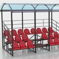 По верху и по торцам трибун предусмотрены ограждения. Трибуна имеет навес.