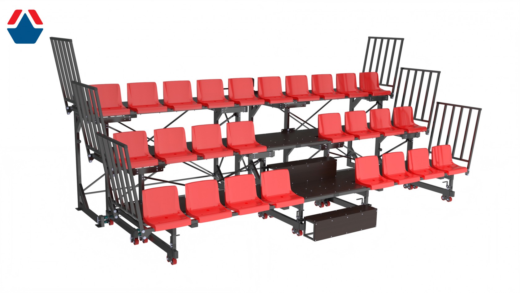 2. Экономия пространства: в сложенном состоянии трибуна занимает меньше места, что делает ее идеальным решением для мероприятий, проходящих в ограниченных пространствах.