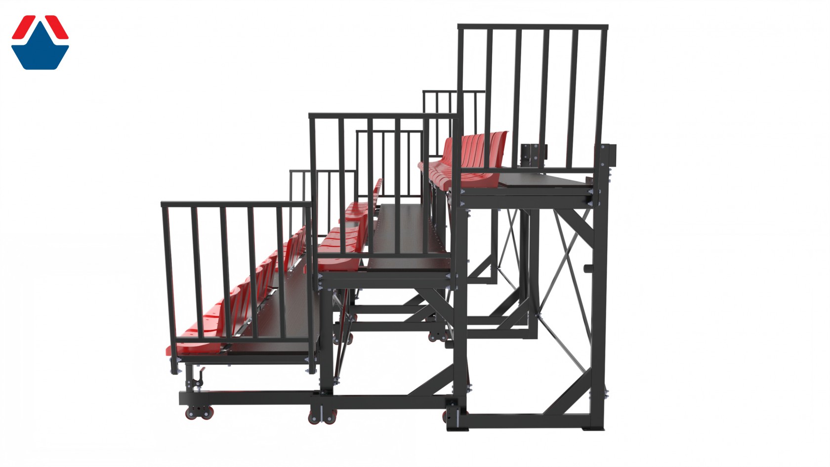 2. Экономия пространства: в сложенном состоянии трибуна занимает меньше места, что делает ее идеальным решением для мероприятий, проходящих в ограниченных пространствах.