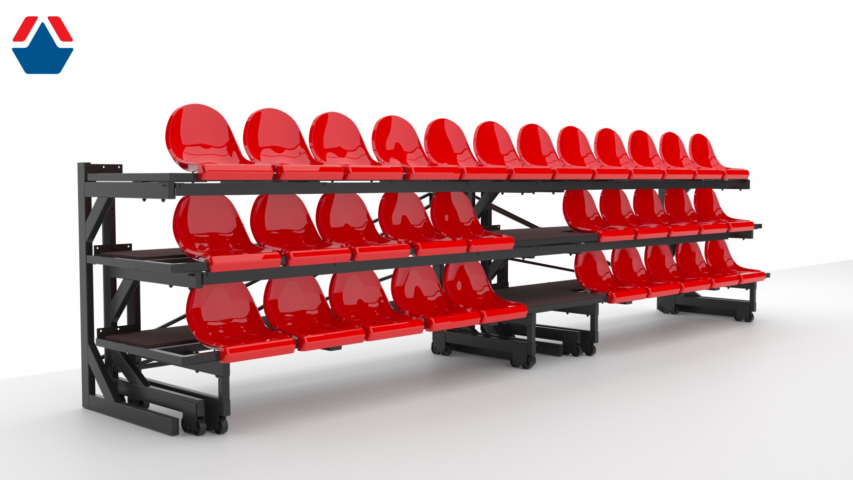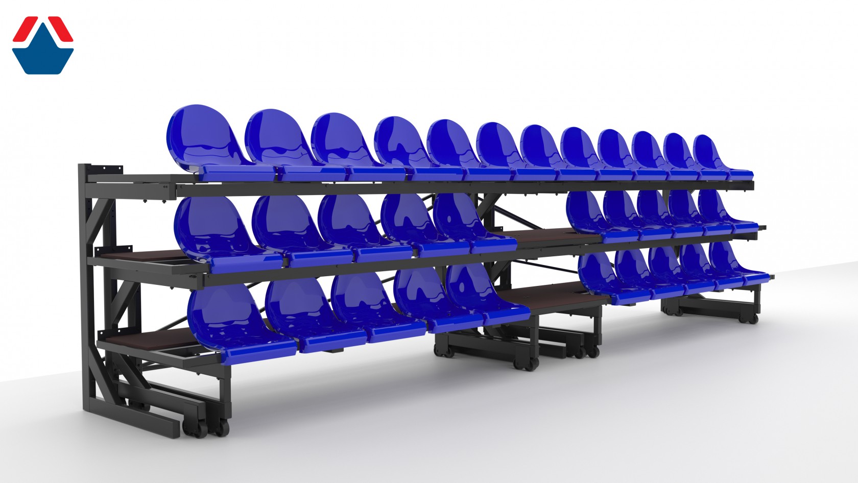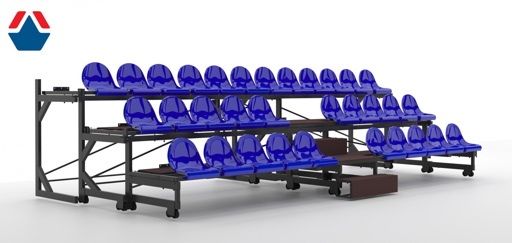 2.Экономия пространства: в сложенном состоянии трибуна занимает меньше места, что делает ее идеальным решением для мероприятий, проходящих в ограниченных пространствах.