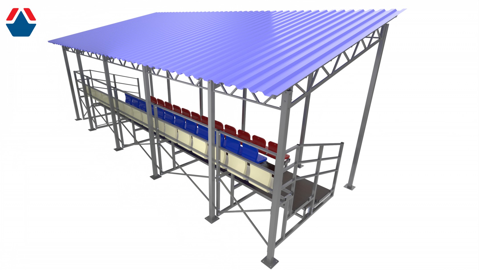 Трибуна представляет собой сборно-разборную конструкцию с рядами мест для зрителей, расположенными с возвышением одного ряда над другим в сторону от спортивной зоны.
