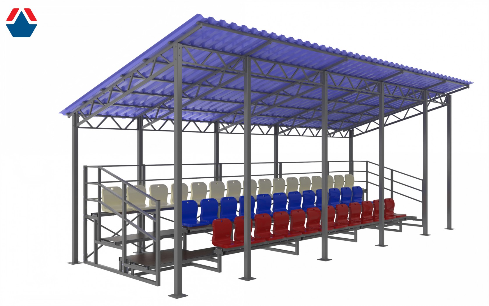 Трибуна сборно-разборная 3-х рядная на 40 мест (с навесом из профлиста) Екатеринбург