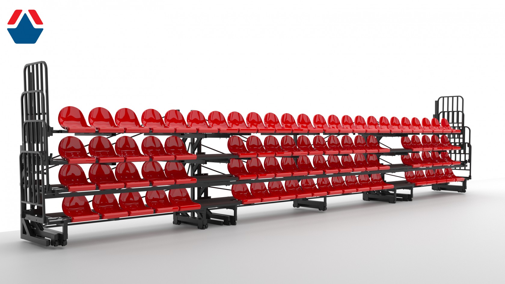 2. Экономия пространства: в сложенном состоянии трибуна занимает меньше места, что делает ее идеальным решением для мероприятий, проходящих в ограниченных пространствах.
