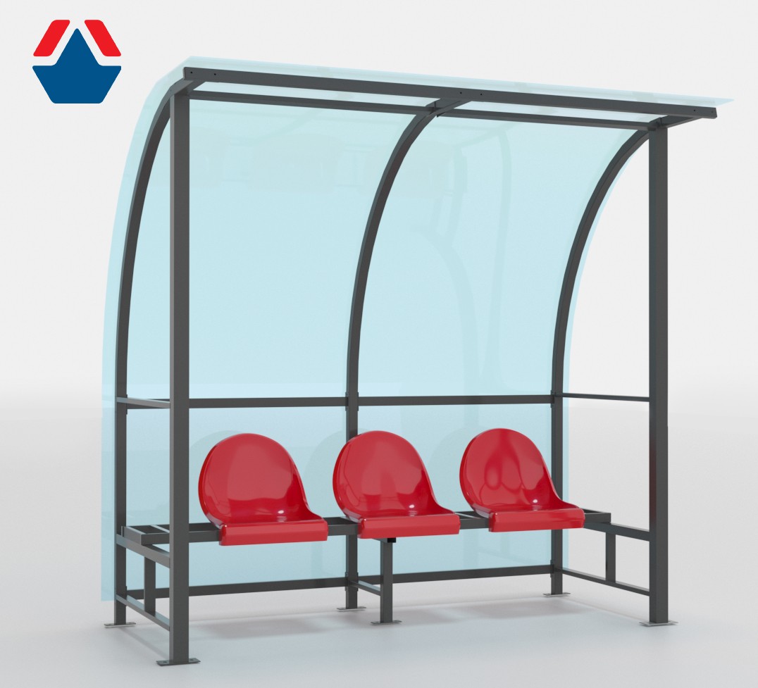 Изделие является модульной сборно-разборной конструкцией, состоящей из боковин, каркаса среднего, каркаса сидений, навеса, соединяемых при помощи болтовых соединений.