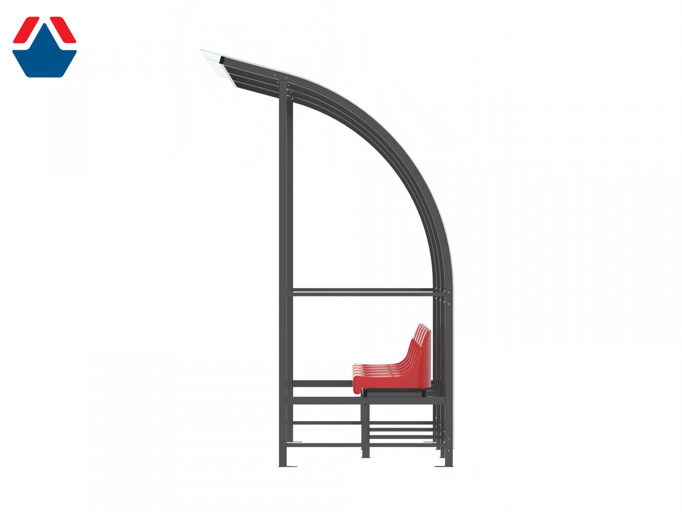 Изделие является модульной сборно-разборной конструкцией, состоящей из боковин, каркаса среднего, каркаса сидений, навеса, соединяемых при помощи болтовых соединений.