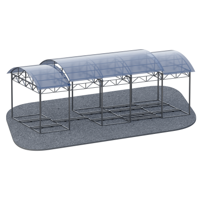 Данная модель особенно востребована при оборудовании общественных спортивных площадок, зон воркаута, дворовых спортивных комплексов, парков активного отдыха, школьных стадионов и территорий спортивных учреждений. Большая длина конструкции позволяет разместить под навесом несколько тренажеров одновременно, формируя функциональную тренировочную зону.