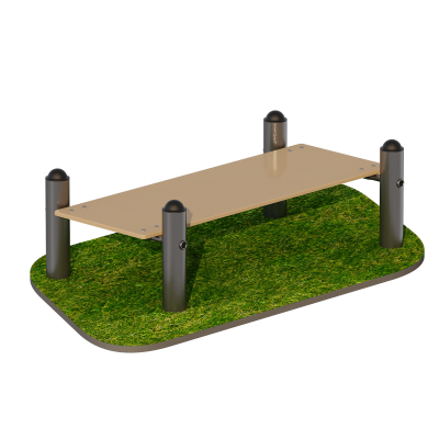 Рабочая поверхность выполнена из влагостойкой ламинированной фанеры толщиной 18 мм с противоскользящим тиснением. Материал устойчив к воздействию влаги и перепадам температур, а рельефная поверхность снижает риск скольжения во время выполнения упражнений.