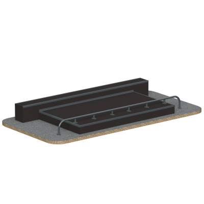 Рейл изготовлен из стальной трубы диаметром 48 мм, рассчитанной на интенсивную эксплуатацию. Рабочие поверхности выполнены из ламинированной влагостойкой фанеры толщиной 12 мм с противоскользящим тиснением. Боковые панели изготовлены из ламинированной влагостойкой фанеры толщиной 6 мм.
