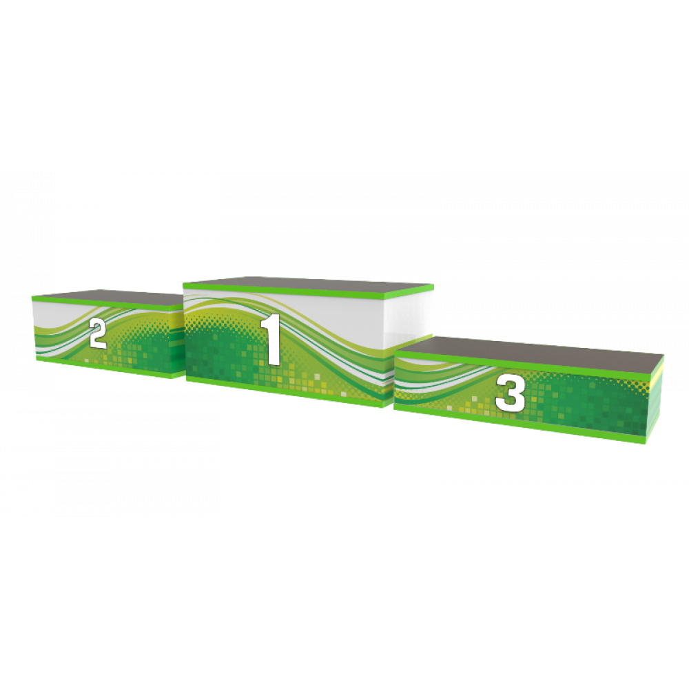 Прямоугольный подиум Премиум ПП-13 разработан для награждения команды призеров и победителей соревнований. Наградной подиум состоит из трех отдельно стоящих тумб с разной высотой. Вместимость каждой ступени пьедестала ПП-3 рассчитана на 4-х взрослых человек или 7 детей. Каждая ступень данного наградного подиума имеет грузоподъемность до 320 кг.