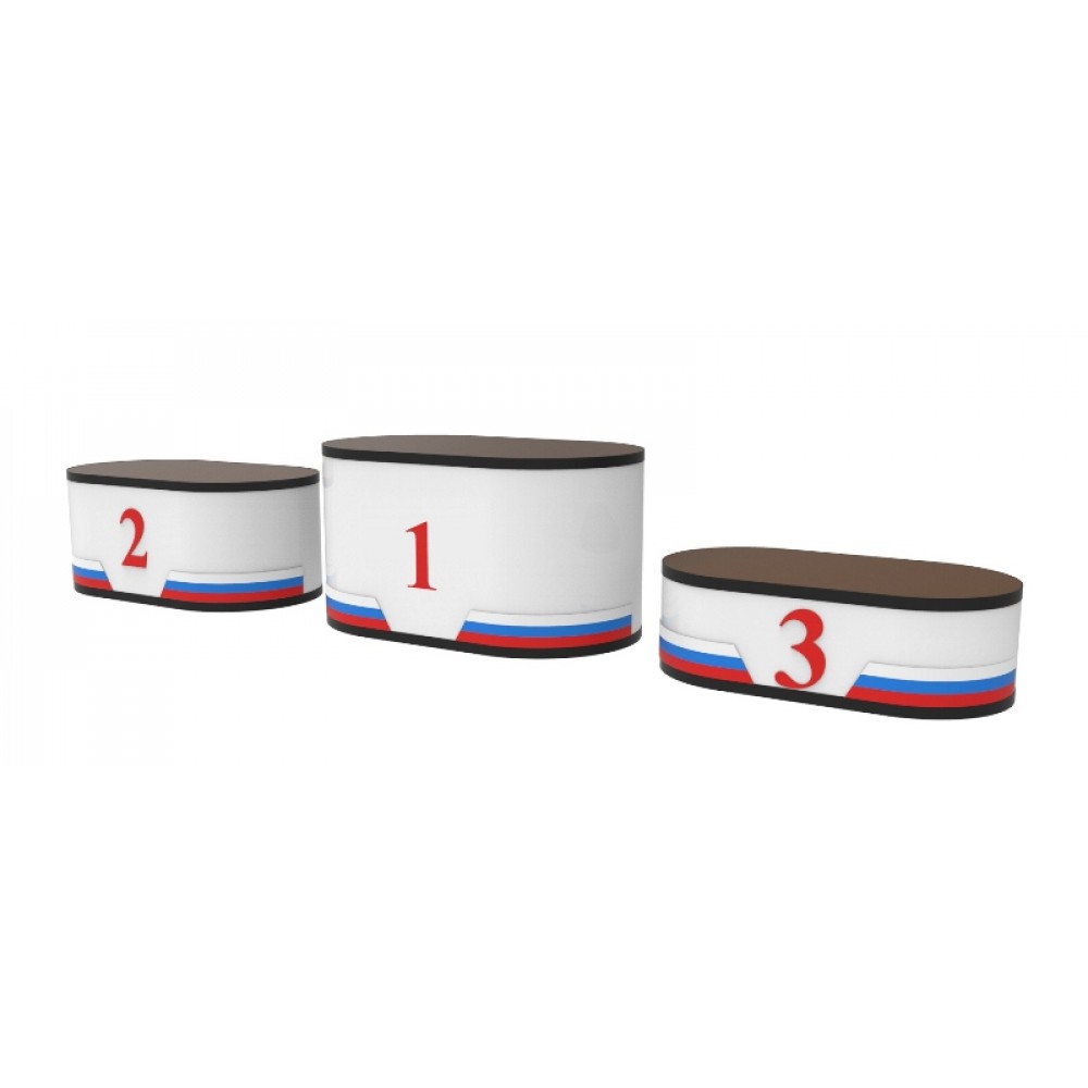 Овальный подиум Стандарт ПС-3 разработан для награждения команды призеров и победителей соревнований. Наградной подиум состоит из трех отдельно стоящих тумб с разной высотой. Вместимость каждой ступени пьедестала ПС-3 рассчитана на 4-х взрослых человек или 7 детей. Каждая ступень данного наградного подиума имеет грузоподъемность до 320 кг.